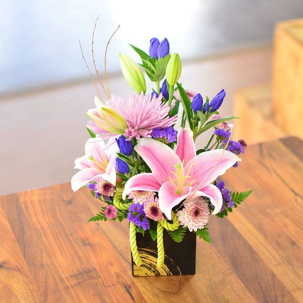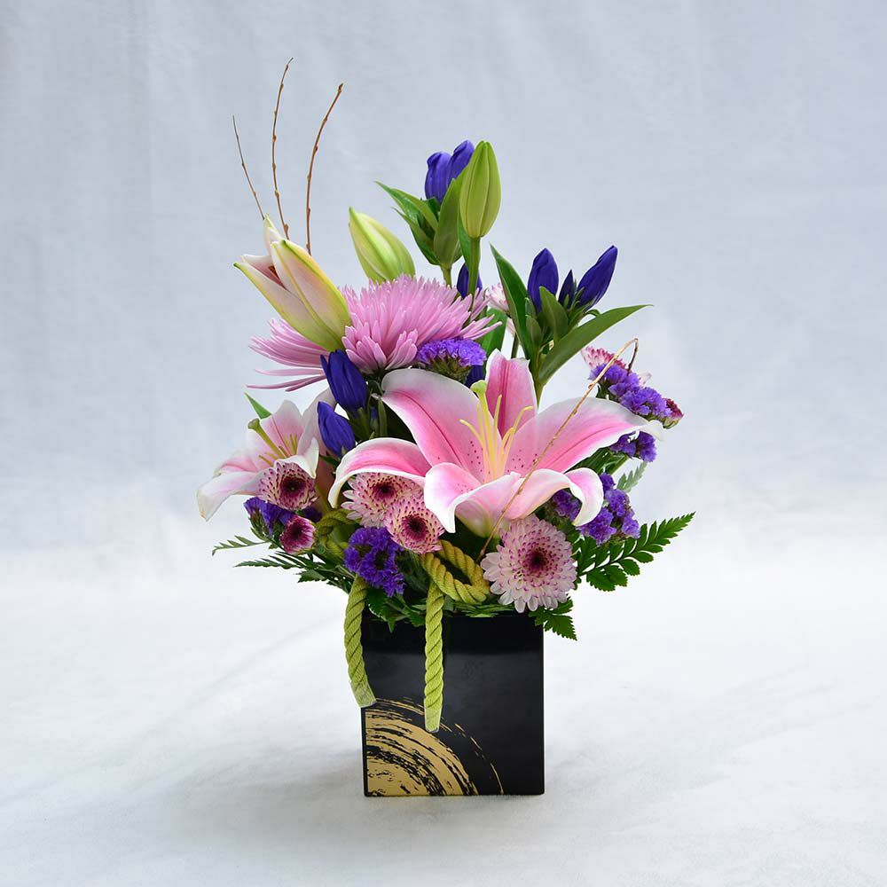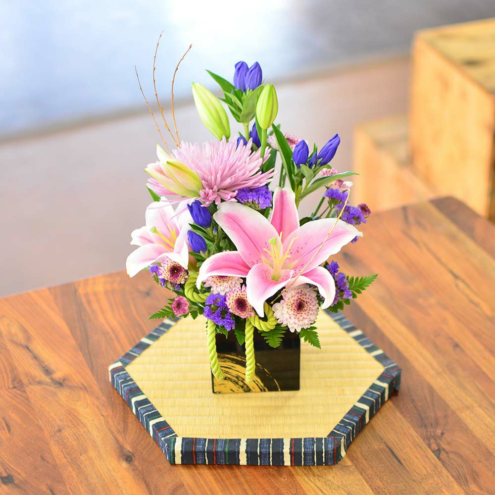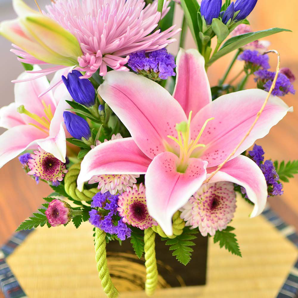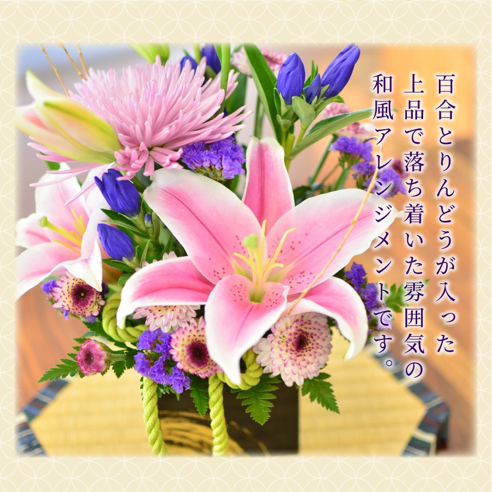 ゆりとりんどうが入った上品で落ち着いた雰囲気の和風アレンジメントです。