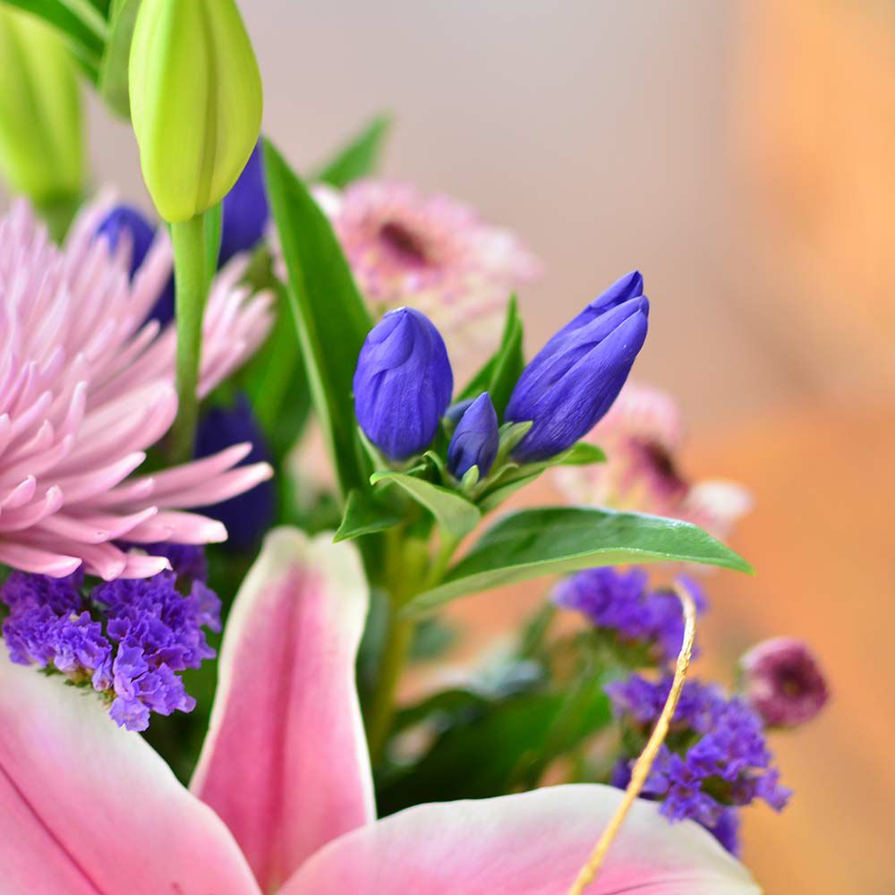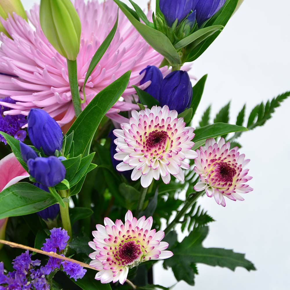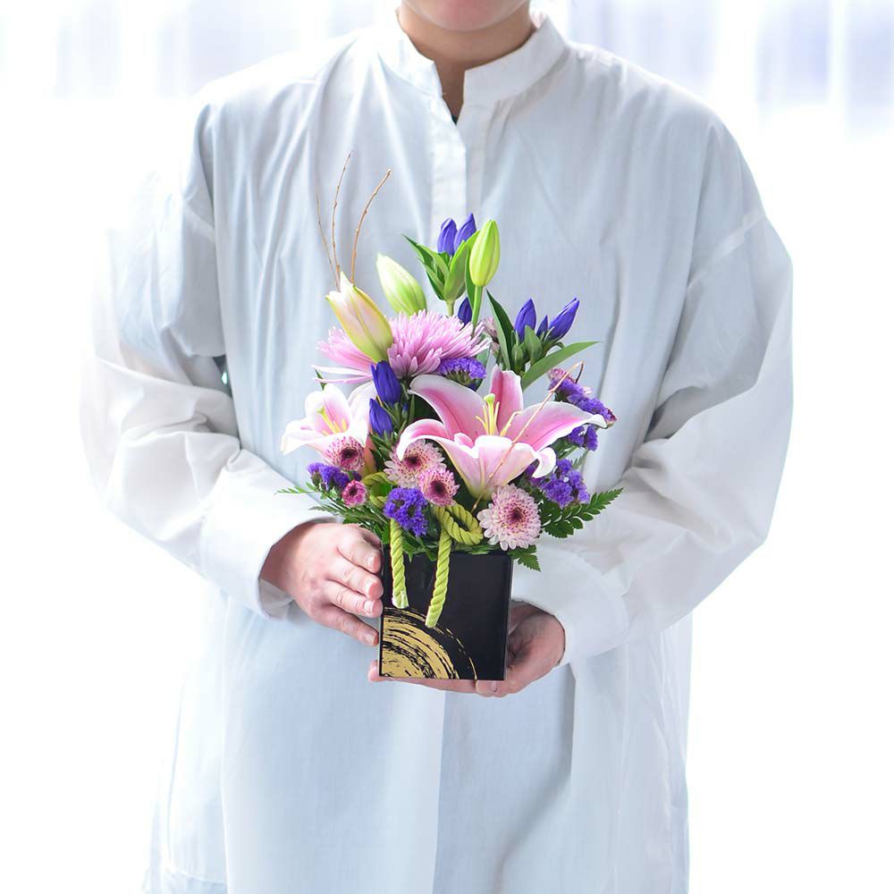 和風アレンジメント、りんどう、紫、百合、敬老アレンジメント、誕生日、記念日、敬老の日、プレゼント、退職祝い、退院祝い、お見舞い、豪華、敬老の日のプレゼント、花