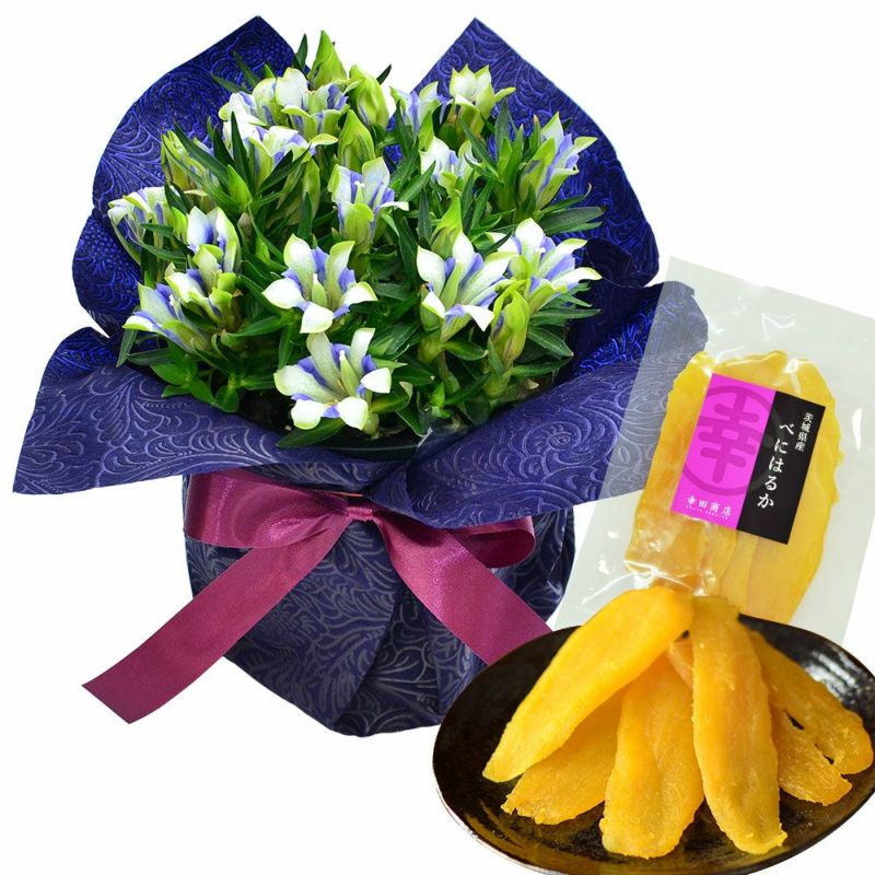リンドウ鉢花 kokomi 白寿 5号鉢と幸田商店の干し芋のセット