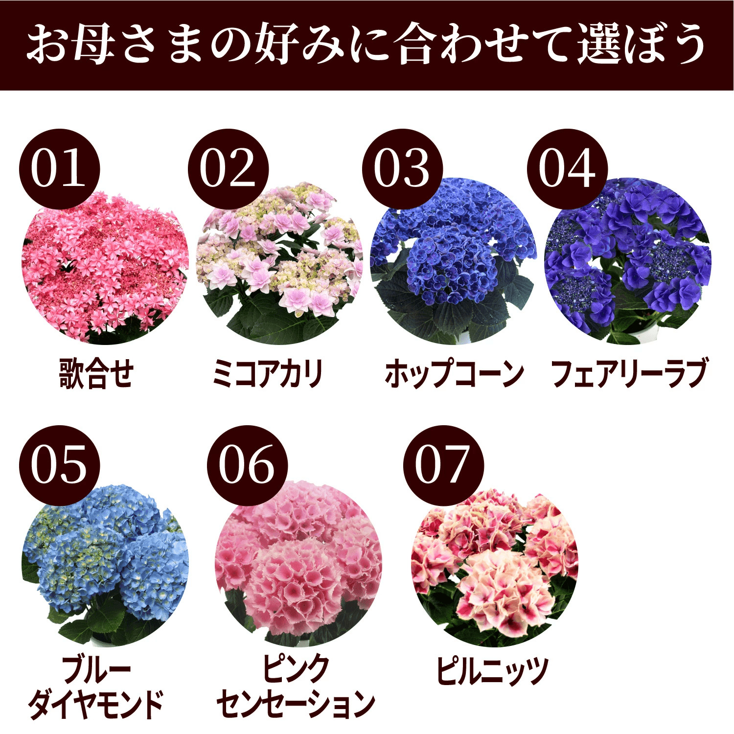 あじさいの種類を選ぶ