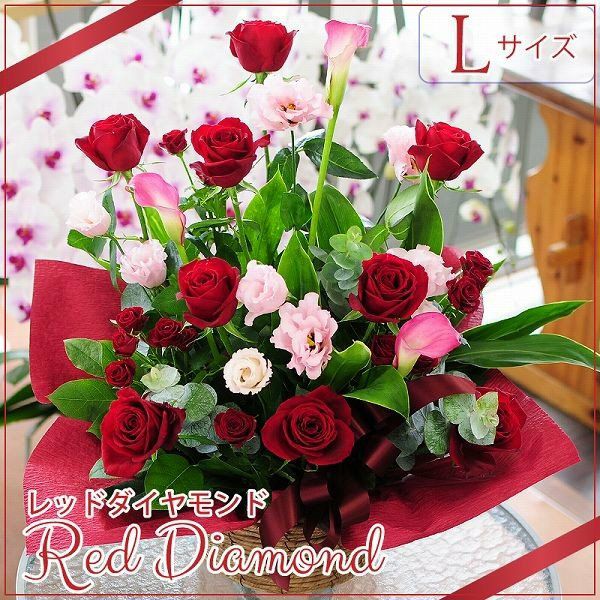 万人に人気の赤いバラをメインにしたアレンジメント フラワーアレンジメント レッドダイヤモンド Lサイズ