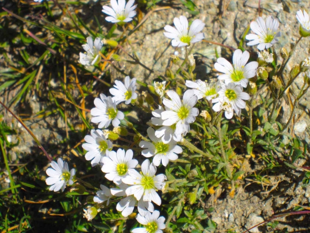 南千島原産といわれる小型の品種です。大輪の花びらを咲かせ、植物全体が灰白色の綿毛に覆われています。細い葉っぱは互い違いに生え、花は白い星形のように咲きます。