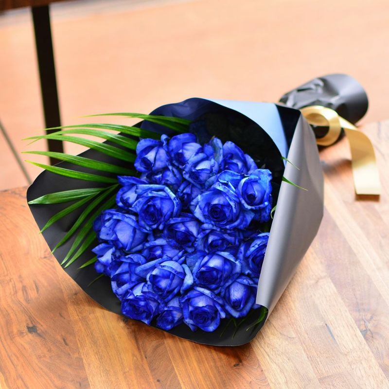 青いバラの花束