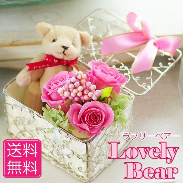 枯れない花と可愛いクマのセット プリザーブドフラワー ラブリーベアー