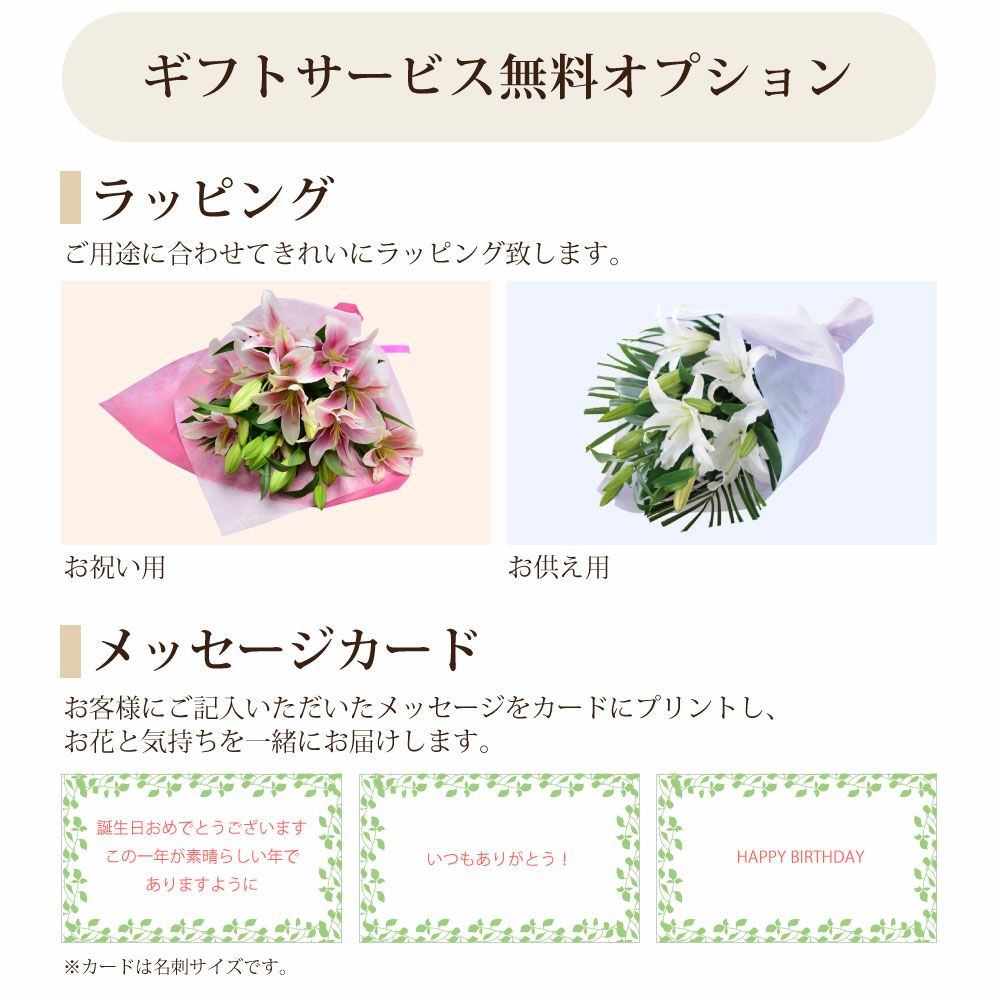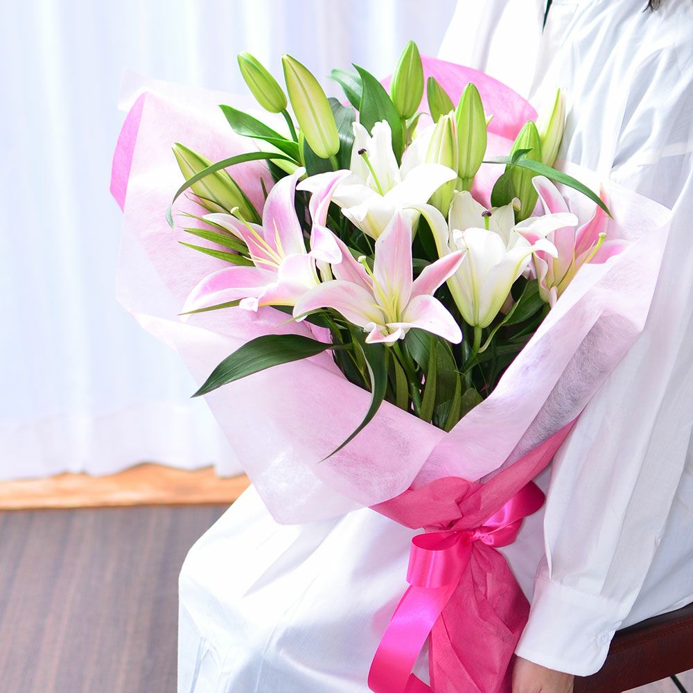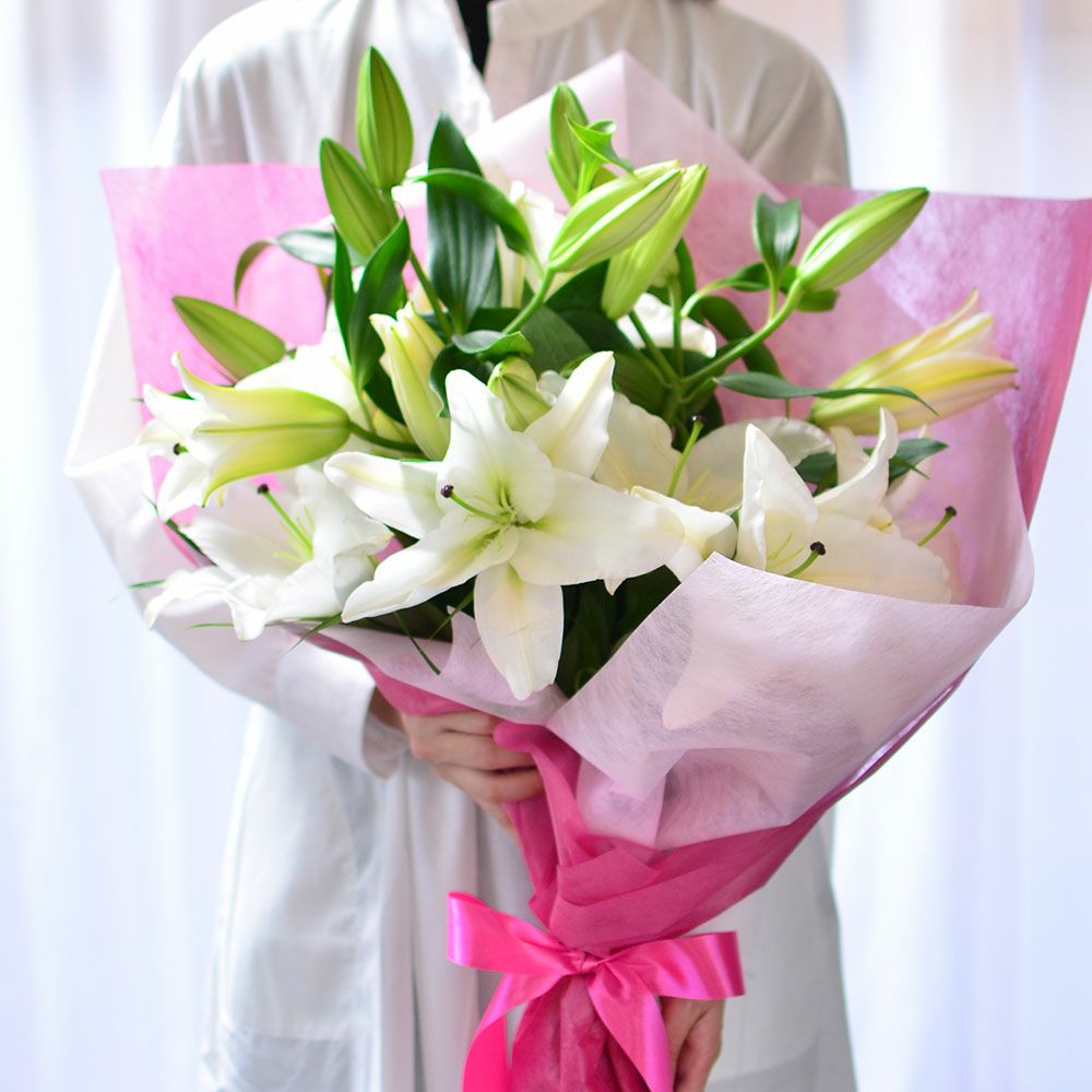 どのような場面でも贈れる百合のお花を紹介いたします。誕生日や記念日などはもちろん、お供えするお花にも贈れます。エーデルワイスではさまざま品種もご用意しております。 百合の人気商品ランキング 百合の花束15輪 4,880円 カサブランカの花束 7,280円 八重百合の花束10輪 5,680円 百合の花束20輪 5,980円 ピンクリリーアレンジメント 8,380円 3色から選べる百合の花束 百合の花束15輪 4,880円 詳しくはこちら 百合の花束20輪 5,980円 詳しくはこちら カサブランカの花束 百合の女王とも言われるカサブランカの花束です。お花の量もも選べますので、お好みのサイズをお選びください。 カサブランカの花束 7,280円 詳しくはこちら 八重百合百合の花束 八重百合の花束10輪 5,680円 詳しくはこちら 八重百合の花束15輪 7,880円 詳しくはこちら 百合のアレンジメント ホワイトリリーアレンジメント 8,080円 詳しくはこちら ピンクリリーアレンジメント 8,380円 詳しくはこちら