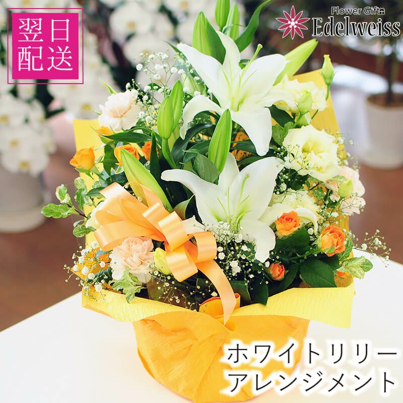 白、ユリ、ゆり、アレンジメント、百合、結婚記念日、出産祝い、プレゼント、成人式、卒業祝い、入学祝い、退職祝い、退院祝い、楽屋花、発表会、お見舞い、白寿祝い、竣工祝い、栄転祝い、就任祝い、新築祝い、創立記念祝い、創立記念日、移転祝い、落成祝い、ご出演、お正月、元旦、愛妻の日、母の日、父の日、お中元、敬老の日、お歳暮、いい夫婦の日