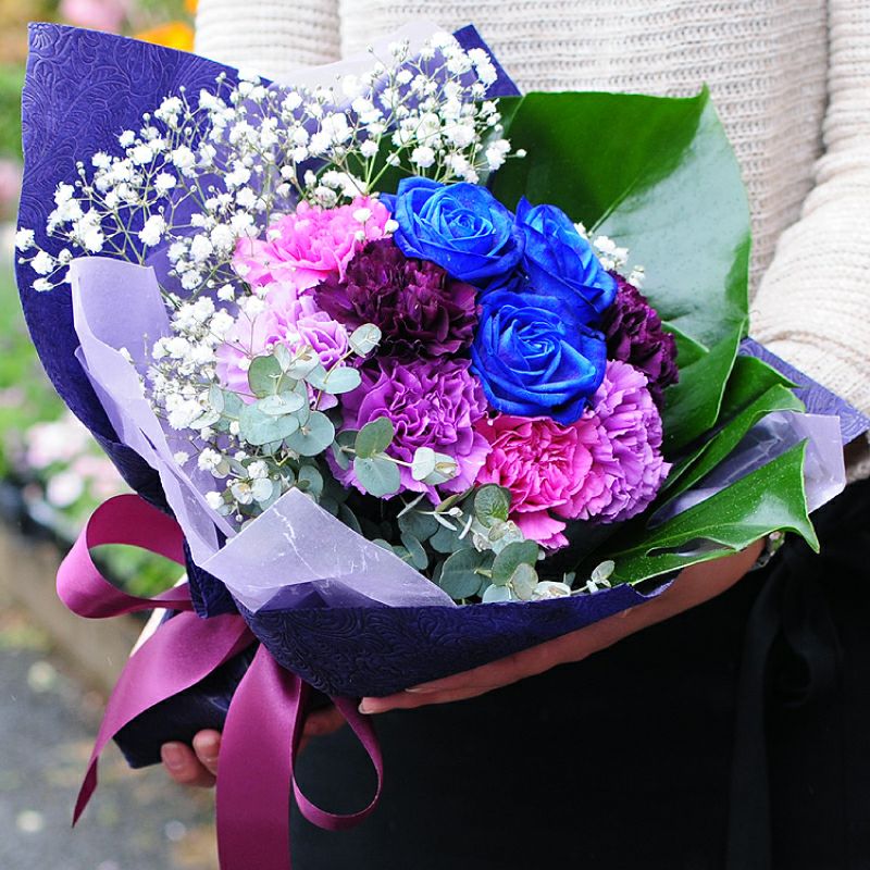 青、ブルー、紫、パープル、花束、ブーケ、青いバラ、青バラ、ブルーローズ、ムーンダスト、カーネーション、記念日、誕生花、プロポーズ、告白、プレゼント、結婚記念日、発表会、バレンタイン、ホワイトデー、母の日、父の日、愛妻の日、いい夫婦の日、バレンタインデー、結婚記念日、フラワー、女性、ホワイトデー、母、即日発送、お祝い、妻、記念日、結婚祝い、 退職祝い、生花、女友達、ブーケ、おしゃれ、母の日