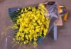 蝶のように見える小さな黄色い花がたくさんついたオンシジュームの花束です。