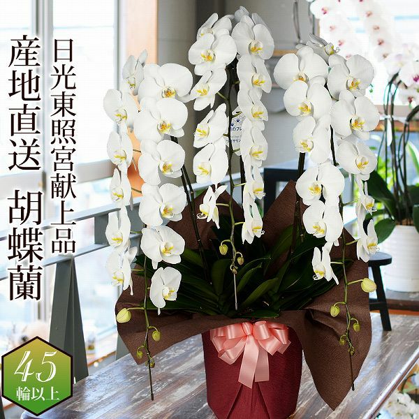 日光東照宮献上品として唯一認定された高級胡蝶蘭 蘭のフレンズ 胡蝶蘭 3本立 45輪以上 8号鉢 産地直送