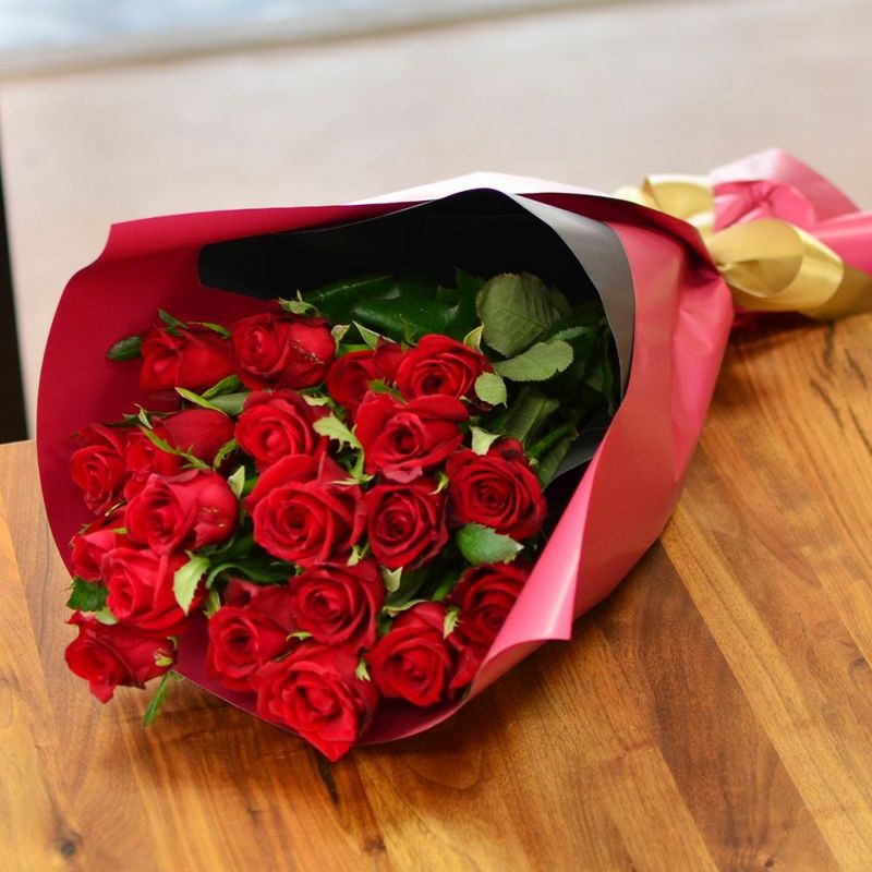 フラワーバレンタインに花束・卒業や卒園のお祝に赤いバラ20本の花束