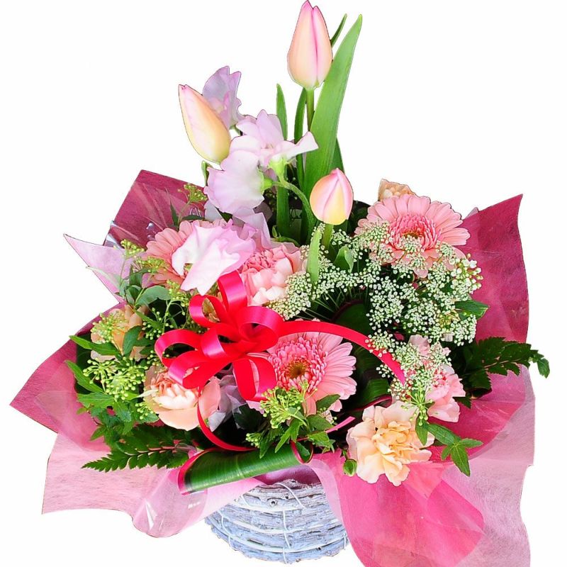 チューリップやスイートピーが入りボリューミー フラワーアレンジメント スプリングミックス