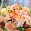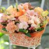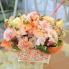 桃色と橙色の2色から選べる、純粋な心を思わせるような淡い色のお花のアレンジメント。