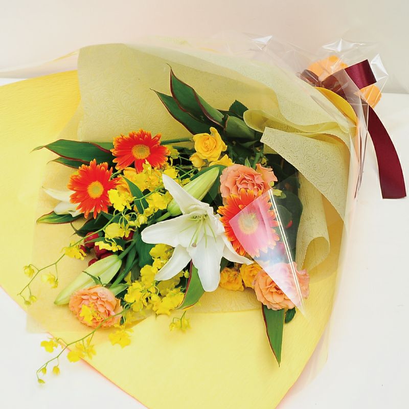 オレンジ、イエロー、黄色、花束、誕生日、記念日、退院祝い、発表会、お見舞い、快気祝い、合格祝い、送別、退職祝い、プレゼント、ギフト、発表会、愛妻の日、バレンタイン、ホワイトデー、ハロウィン、クリスマス、いい夫婦の日