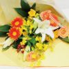 誕生日や送別の会にも贈れる黄色、オレンジ系の花束 イエローオレンジブーケ